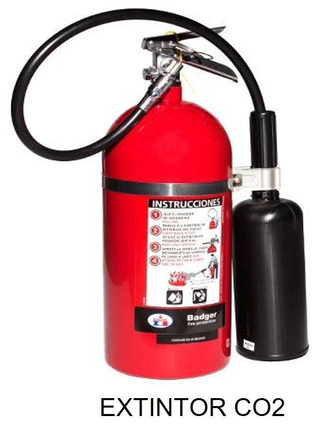 Ideal para incendios de clase C, el extintor de CO2 desplaza el oxígeno y sofoca las llamas. Es particularmente útil en áreas con equipos electrónicos, ya que no deja residuos.